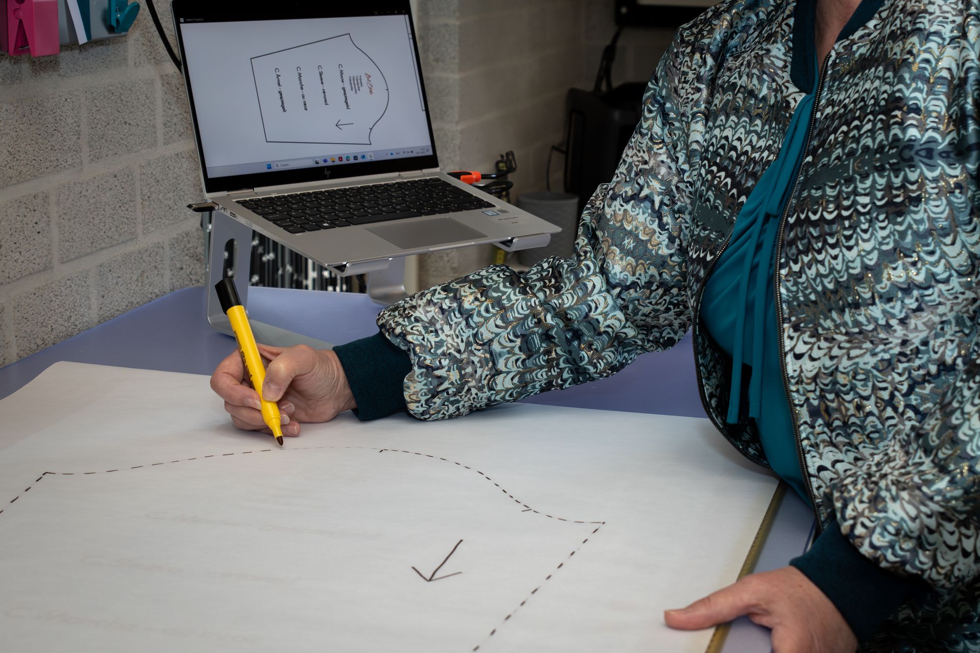 Steeds meer patronen zijn tegenwoordig digitaal en daar spelen wij op in! Sinds kort beschikken ik over twee splinternieuwe beamers in mijn leslokaal. Zo projecteer je patronen direct op de juiste maat, zonder te verdwalen in een wirwar van lijntjes. Zet simpelweg de maten uit die je niet nodig hebt en houd het lekker overzichtelijk. Geen geknip en geplak meer met losse A4’tjes, maar snel, strak en zonder gedoe aan de slag!